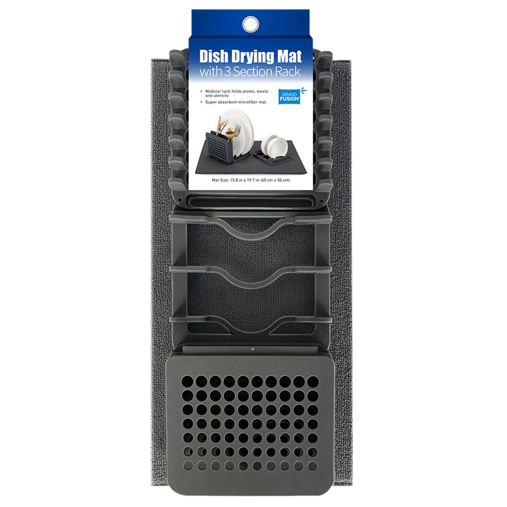 Grand Fusion Dish Drying Mat with 3 Section Rack (Charcoal)