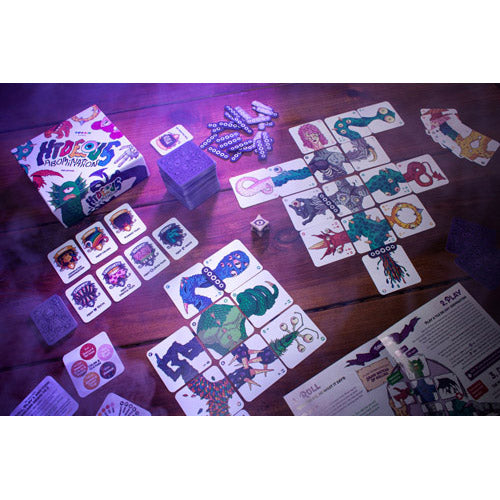 Sharpen your bone saws and practice your whipstitching, the competition has begun! Take turns laying body part tiles to build your own unique abomination, trying to get the most desirable features and win the most trophies. With randomized win